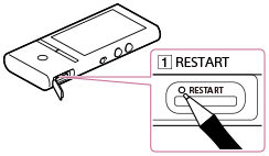 操作中に困ったときや、トラブルが発生したときは、ウォークマンを再起動すると解決することがあります。 再起動する前に、ウォークマンとパソコンの接続を解除し、また、ウォークマンが録音中や再生中でないことを確認してください。録音中や再生中に再起動するとデータが破壊される可能性があります。