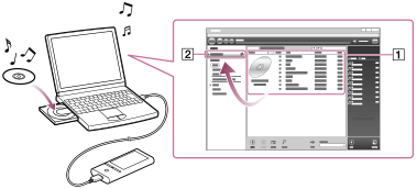 - ウォークマンに転送した音楽コンテンツは、パソコンにも同時に取り込まれます。