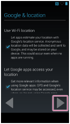 A Walkman első bekapcsolásakor a kezdeti beállítások végrehajtására szolgáló képernyő jelenik meg. A jelen leírás feltételezi, hogy a Wi-Fi-kapcsolat és a Google fiók beállításai első alkalommal kihagyásra kerültek és szükség szerint később kerülnek végrehajtásra.