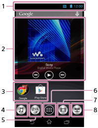 Widgets de aplicativos, atalhos, pastas e mais são exibidos na tela Inicial. Há várias telas Iniciais, e a tela pode ser alternada por meio de se mover a tela para a direita ou esquerda.