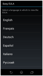 - Toque em um idioma para ver o contrato de licença do software nesse idioma.