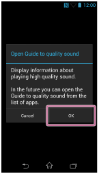 - Toque em [OK] para confirmar o conteúdo de [Guide to quality sound].
