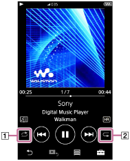 Todas as faixas são reproduzidas repetidamente. Para repetir todas as faixas no Walkman, selecione [Todas as Músicas] no ecrã da biblioteca. |