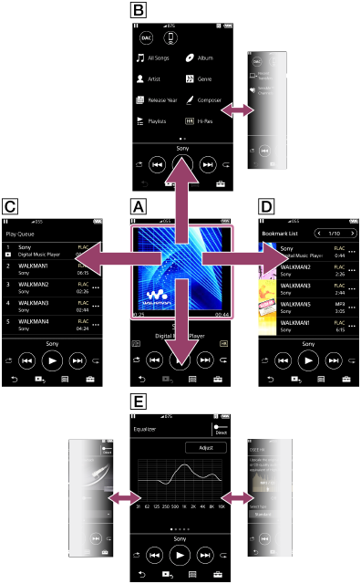 Razpoložljivi elementi se lahko razlikujejo glede na zaslon ali nastavitve. Nastavite osnovne nastavitve za Walkman tako, da izberete [Settings] meni.