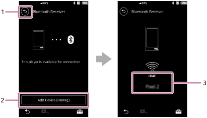 - Ses kalitesi ayarlarını değiştirmek için Bluetooth Alıcı ekranında yukarı doğru kaydırın. Akıllı telefonda Walkman ses kalitesini kullanarak müzik dinleyebilirsiniz.