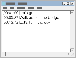 - Informacije o času lahko vnesete levo od vsake vrstice z besedilom, in sicer v naslednjem zapisu: