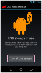 If this message is not displayed on the screen, swipe the status bar, and then tap [Turn off USB storage] on the notification panel.