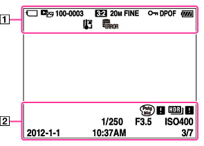 Billednummer/antal billeder, der er optaget i den valgte visningstilstand