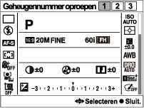 (Geheugennummer oproepen) instelt na het voltooien van de opname-instellingen, krijgen de geregistreerde instellingen voorrang en kunnen de oorspronkelijke instellingen ongeldig worden. Controleer de indicators op het scherm voordat u opneemt.