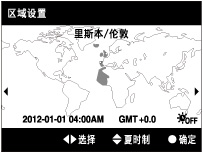 按控制盘上的/或转动控制盘选择所需区域,然后用/选择夏时制时间。