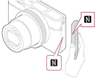 • PlayMemories Mobile را روی تلفن هوشمند خود راه اندازی نموده، و سپس تلفن هوشمند را به آهستگی به طرف (علامت N‏) این محصول حرکت دهید.