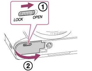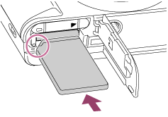 • مع توجيه الزاوية المقصوصة في الاتجاه المبين، قم بإدخال بطاقة الذاكرة حتى تستقر في مكانها.