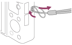 ติดสายร้อยแล้วสอดมือของท่านผ่านห่วงเพื่อป้องกันผลิตภัณฑ์เสียหายจากการตกหล่น