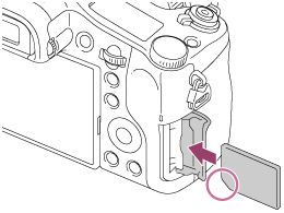 - Indsæt hukommelseskortet med det afskårne hjørne vendt i den viste retning, indtil det klikker på plads.