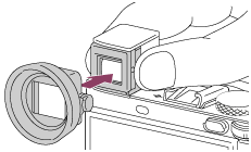 - Älä paina etsintä alas, kun okulaarin kuppi on kiinnitetty. Kamera tai okulaarin kuppi voi vaurioitua.