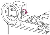 Tietyissä tilanteissa, kuten kuvattaessa kohti aurinkoa, on suositeltavaa kiinnittää okulaarin kuppi, kun käytetään etsintä. Säädä diopteria liu’uttamalla diopterin säädön liukusäädintä ennen okulaarin kupin kiinnittämistä.