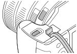 استخدم هذا عند استخدام محول تيار متردد AC-PW20 (يباع بشكل منفصل). قم بإدخال لوحة التوصيل في حجيرة البطارية، ثم مرر السلك من خلال غطاء لوحة التوصيل كما هو موضح أدناه.