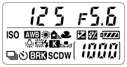 Du kan stille inn lukkerhastigheten, blenderåpningen, eksponeringskompenseringen, blitskompenseringen, ISO, hvitbalansen og bruksmodusen ved å bruke indikatorpanelet øverst på kameraet.