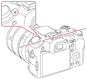 -merket viser plasseringen av bildesensoren*. Når du måler den nøyaktige avstanden mellom produktet og motivet, må du vise til plasseringen av horisontallinjen.