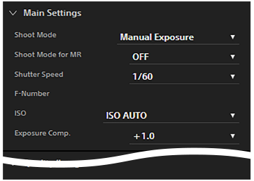 Вы можете изменить настройки съемки для камер. Выберите из ниспадающего меню нужную настройку для каждого пункта настройки.