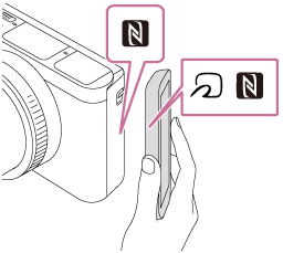 (N-merkki). - Kosketa älypuhelimella tuotetta 1-2 sekuntia, kunnes PlayMemories Mobile käynnistyy.