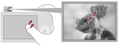 Når du velger [Absolutt posisjon], kan du flytte fokusrammen til en fjern posisjon raskere ettersom du kan angi posisjonen for fokusrammen direkte med berøringsoperasjoner.
