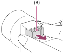 - Agarre ambos os lados da ocular (B) e puxe-a para o lado do monitor até fazer clique.