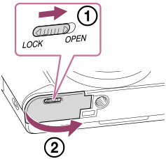 - Откройте крышку аккумуляторного отсека/карты памяти.