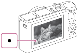 - Säädä näytön kulma ja pidä kiinni kamerasta.Vaihtoehtoisesti katso etsimen läpi ja pidä kiinni kamerasta.