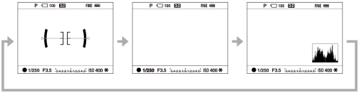 - Для переключения информации, отображаемой на видоискателе, нажимайте кнопку DISP, глядя в видоискатель.