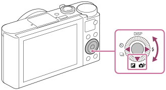 (Eksp.-komp.) på kontrollhjulet → trykk på venstre eller høyre side av kontrollhjulet eller roter kontrollhjulet, og velg ønsket innstilling.