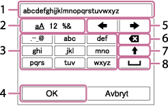 Flytt markøren til ønsket tast ved hjelp av kontrollhjulet, og trykk deretter på midten av kontrollhjulet for å "skrive".