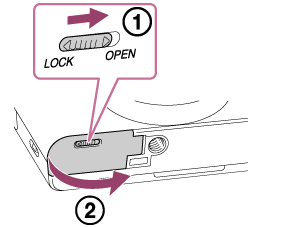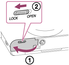 - Åpne batteri-/minnekortdekselet.