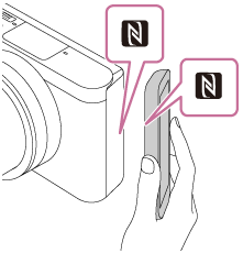 (N-merket) vises på produktet. - Hold smarttelefonen inntil produktet i 1-2 sekunder, til PlayMemories Mobile starter.