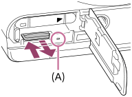 microSD memóriakártya/microSDHC memóriakártya/microSDXC memóriakártya: A kártyát egyenesen helyezze be, és az érintkezős oldala az ábra szerint a fényképezőgép képernyős oldala felé nézzen (A).
