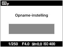 - Druk op het midden van het besturingswiel.Het opname-instelscherm wordt gesloten en de camera wordt in de opname-standby-stand gezet.