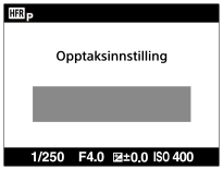 - Du kan ikke justere eksponeringen, justere fokus, bruke zoomen e.l. under standby for opptak. Hvis du vil endre opptaksinnstillingene, trykker du på midten av kontrollhjulet igjen for å gå tilbake til innstillingsskjermbildet for opptak.
