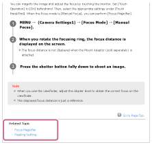 "Сродна тема" в долната част на всяка страница съдържа раздели, които съдържат информация, свързана със страницата с описание, която се показва в момента. За по-задълбочено разбиране на показваната в момента страница вижте и изброените раздели.
