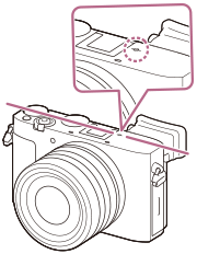 (Маркер за позиция на сензора за изображения). Когато измервате точното разстояние между фотоапарата и обекта, използвайте като еталон позицията на хоризонталната линия.