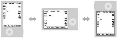 (Setup) → [Operation Customize] → [DISP (Screen Disp) Set] i način prikaza može se prebaciti pritiskom gumba DISP (postavke zaslona). - Tijekom okomitog prikaza u načinima snimanja videozapisa, informacije osim onih o statusu snimanja videozapisa i vremenu snimanja bit će skrivene određeno vremensko razdoblje ako je način prikaza zaslona postavljen na sljedeće i postavljena je opcija [Exposure: TimeOut].