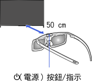 第一次使用主動式3D眼鏡時,在距離電視機50 cm的範圍內握持眼鏡,開啟電視,然後按住眼鏡上的