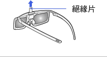 第一次使用主動式3D眼鏡時,請移除電池的絕緣片。