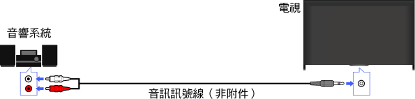 使用音訊訊號線將音響系統(如放大器)連接到電視機。
