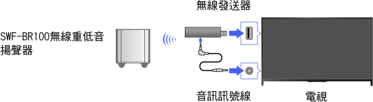 您可以使用選購的SWF-BR100無線重低音揚聲器延長電視聲音的低音響應。