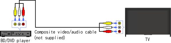 If your BD/DVD player has composite jacks (sockets), connect it using a composite video/audio cable.