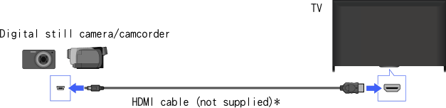 Connect your Sony digital still camera or camcorder using an HDMI cable. Use a cable that has an HDMI mini jack (socket) for digital still camera/camcorder end, and a standard HDMI jack (socket) for the TV end.