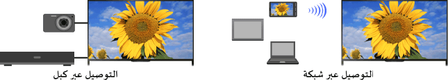 صل الأجهزة المختلفة (على سبيل المثال مسجل BD، وكاميرا الصور الثابتة، والكمبيوتر الشخصي، والهاتف الذكي، والجهاز اللوحي) بالتلفزيون. ويمكنك الاستمتاع بتشغيل المحتوى مثل الصور والموسيقى على الجهاز المتصل.