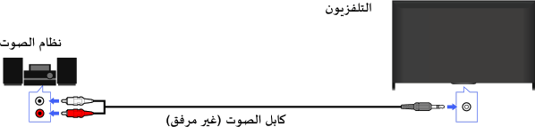 صل نظامًا صوتيًا (مثل مكبر الصوت) إلى التلفزيون باستخدام كابل صوتي.