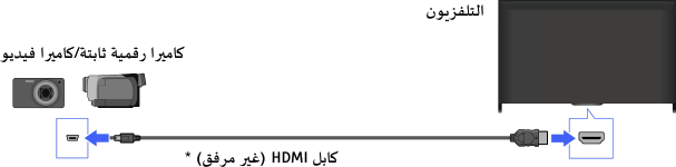 قم بتوصيل كاميرا Sony الرقمية الثابتة أو كاميرا الفيديو باستخدام كابل HDMI. استخدم كابل يشتمل على مقبس (المقبس) HDMI صغير للكاميرا الرقمية الثابتة/كاميرا الفيديو، ومقبس (المقبس) HDMI قياسي للتلفزيون.