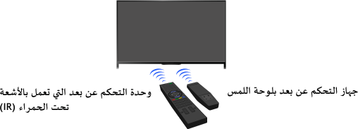 لتشغيل التلفزيون، يمكنك استخدام جهاز تحكم عن بعد يعمل بـ IR (الأشعة تحت الحمراء) أو جهاز التحكم عن بعد بلوحة اللمس. ويعتمد توفير جهاز التحكم عن بعد بلوحة اللمس مع التلفزيون على الموديل/المنطقة/البلد. يتوفر جهاز التحكم عن بعد بلوحة اللمس الاختياري.